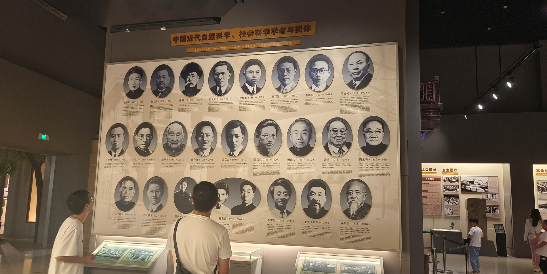 在人物展览区,如图片中的严肃面容与整齐排列,呼应红色美学中“革命精神”的内核。红色不仅是视觉符号,更象征这些科学家以科学救国的信念,在民族危亡之际承担历史使命,其学术成就与爱国情怀共同构成红色文化的精神底色。